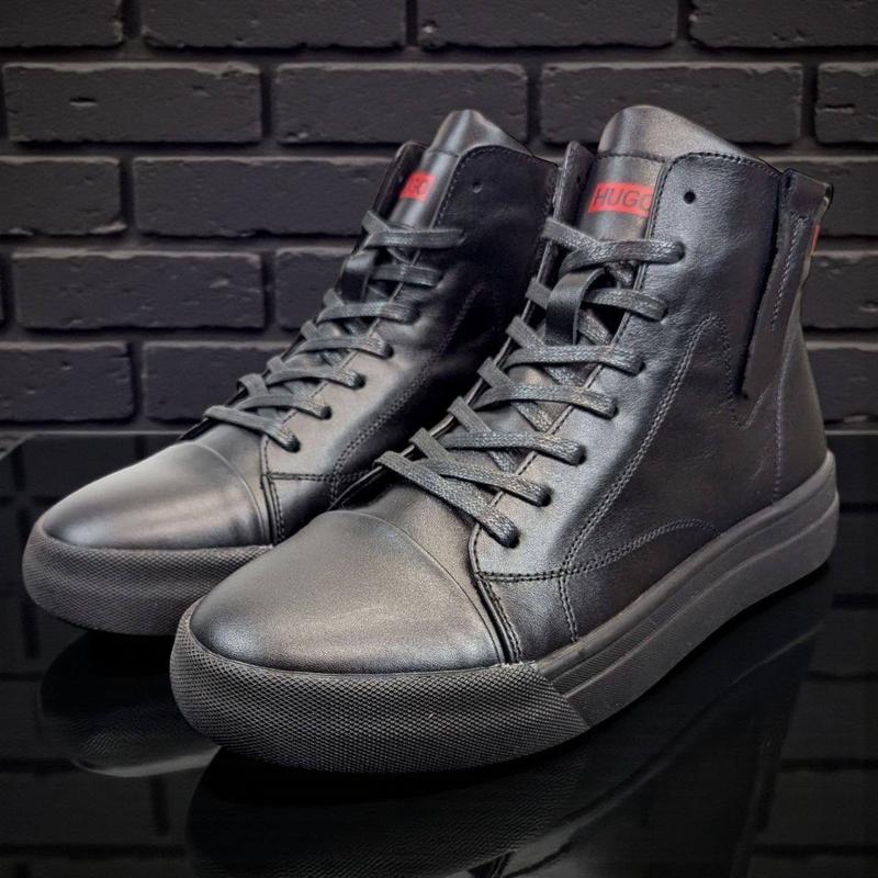Високі брендові черевик hugo boss з натуральної шкіри , чоловіче зимове взуття на хутрі, в...