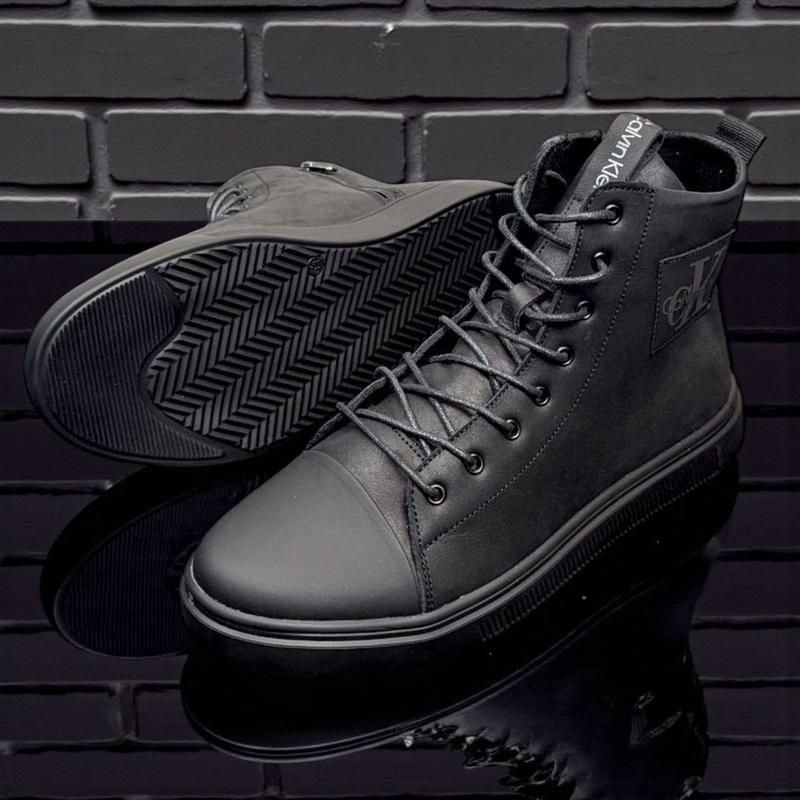 Високі брендові черевик calvin klein з натуральної шкіри , чоловіче зимове взуття на хутрі...