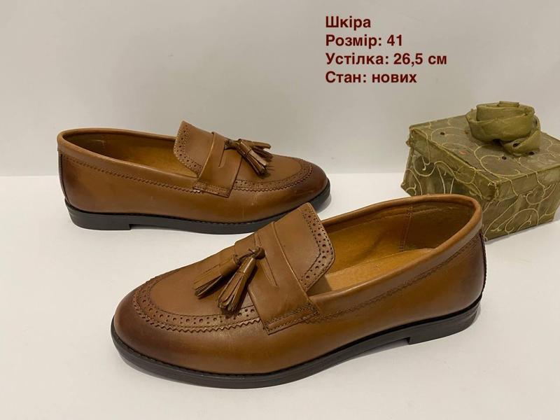 Шкіряні стильні лофери відомого бренду 41 р. Устілка 26,5 см. Стан нових. Фірма спеціалізована на чоловіків, але , на мою думку, ця модель уні. Широкі і легкі.