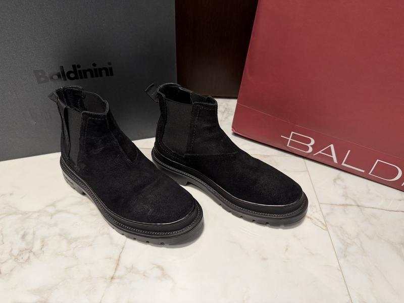Чорні зимові італійські челсі Baldinini. Розмір повний 41, приблизно 26,5см, може бути під теплий носок або до 27см… Як прийнято зараз говорити «європейська зима»… тобто осінь-зима. Повністю шкіряні зовні і в середині. Без утеплення (але жодного разу в них не замерзали). Повний комплект з магазину! Стан чудовий !