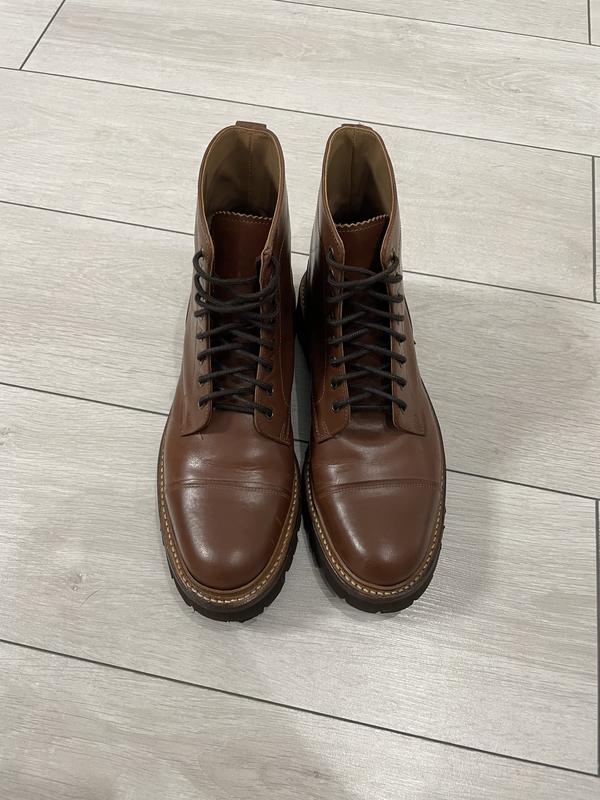 Черевики високі з натуральної шкіри кольору коричневого кольору. Відомий якісний бренд. На зарубіжних сайтах ціна від 300$ Розмір 8 це приблизно 41 Худі, анорак, кофта, 1/4 зіп, мастерка, куртка, зіпка, водолазка, поло, лонг, світшот, штани, карго, трансформер, з капюшоном, на застібці, біг лого, овер сайз