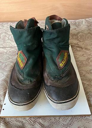 Черевики в гарному стані, без дефектів, тільки видно, що носили. Складаються з двох частин: верхня від лижних чобіт Salomon, підошва від іншого взуття. Пришита міцно. Взуття на шнурівці, зверху замок. Розмір приблизно 43, довжина за устілкою 29.