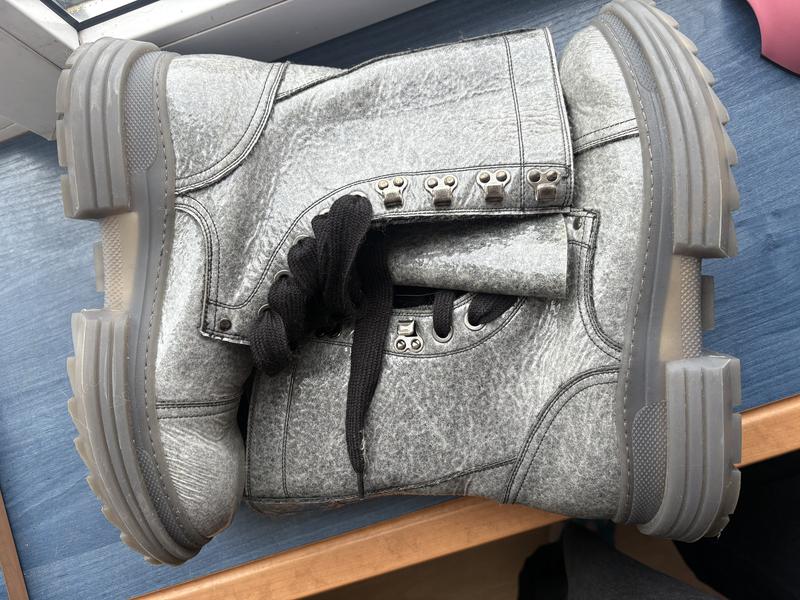 Стильні,сірі з глянцевим покриттям черевики Beyond на шнурівці та масивною підошвою