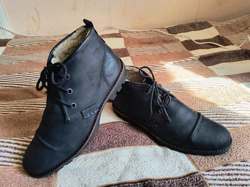 Зимние ботинки Clarks.В хорошем состоянии,без дефектов.Натуральная кожа, в середине в носке, искусственный утеплитель, голени натуральный мех,подошва в красивом состоянии.На больших пальцах с середины слегка протерлась ткань.Колир черный.Размер UK 9.5,US 10.5,наш у 44.5, по стельке от края до края 30см. Подойдут на ступню в пределах 29см. Удачных покупок!