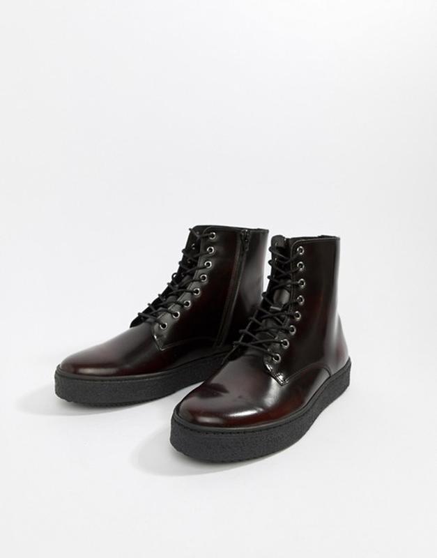 Черевики демісезонні шкіряні. Розмір UK 6, US 7, EUR 40, устілка 260 мм, Колір бордовий. Підошва м'яка прошита. Висота черевик 18 див. Виробництво Португалія.