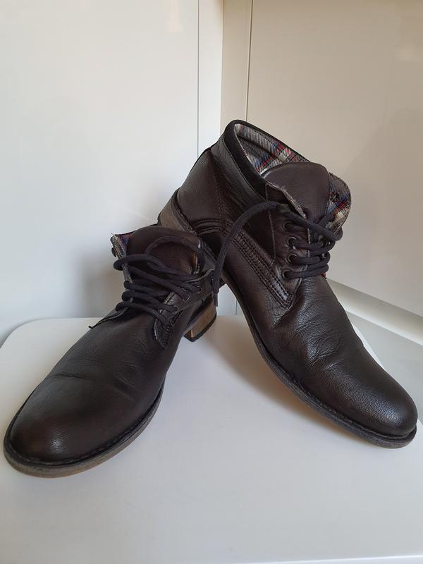 Ботинки из натуральной кожи. Черного цвета на шнурках. Внутри отделка текстиль. Стелька из натуральной кожи. Без дефектов. Длина стельки 29см. Учитывайте носок. Высота ботинка 13см.
