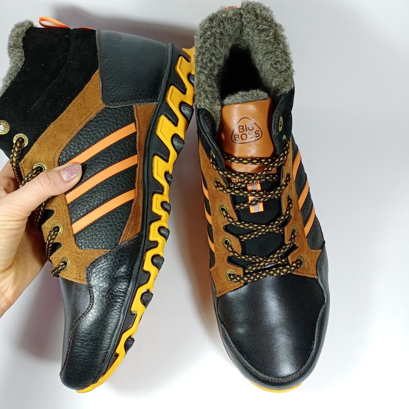 Фирменные зимние ботинки большого размера спортивного стиля на шнуровке выполнены из натуральной кожи. Внутри может быть натуральная цигейка, либо полушерсть. Ботинки с устойчивой формой, прочным задником, качественной фурнитурой и прочной износостойкой подошвой, которая исключает скольжение. Оригинальный дизайн. Цвета : синий, черный , Оранжевый. Длина стельки: 46 -29,5см 47-30,2см 48-31см 49-32см 50-33 см Возможен заказ под индивидуальную полноту ноги. Обращайтесь пожалуйста)
