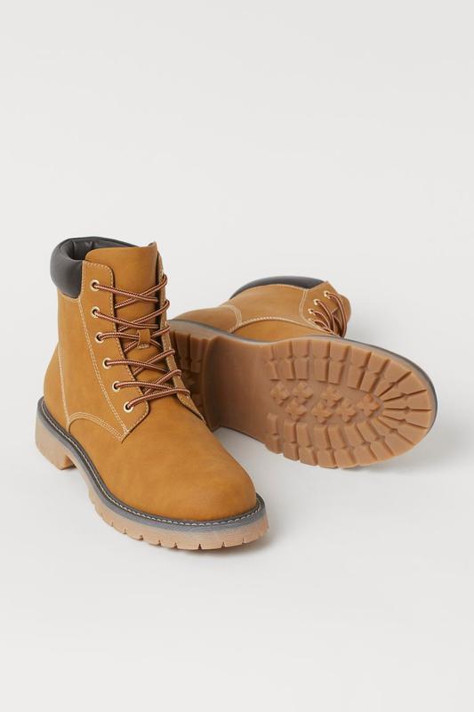 Ботинки из искусственной кожи с декоративным швом по ранту подошвы. Высокое голенище с уплотненным краем сверху и шнуровкой спереди. Подкладка и стелька из текстиля. Грубая подошва. Высота каблука 3 см. ДС = 28 см