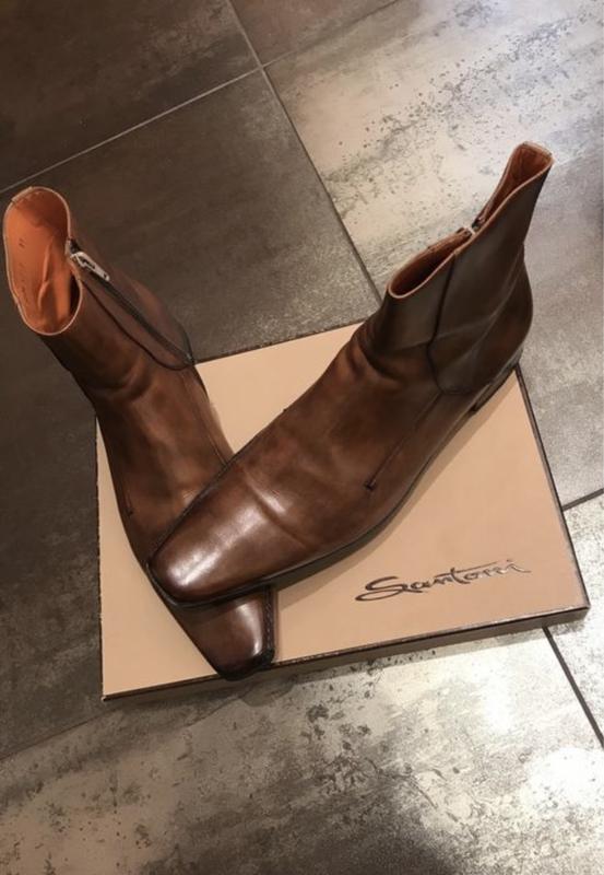 Мужские полусапожки Santoni, цвет- маррони(каштан), р.11(45), в идеальном состоянии, родные набойки, нужна профилактика на кожаную подошву, знаменитая итальянская кожа от Santoni.
