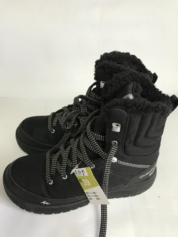 Високі зимові чоловічі черевики відомого європейського бренду Quechua. Виконані із мембранної тканини, що забезпечує водонепроникність. Підошва із каучува з протектором 4 мм.