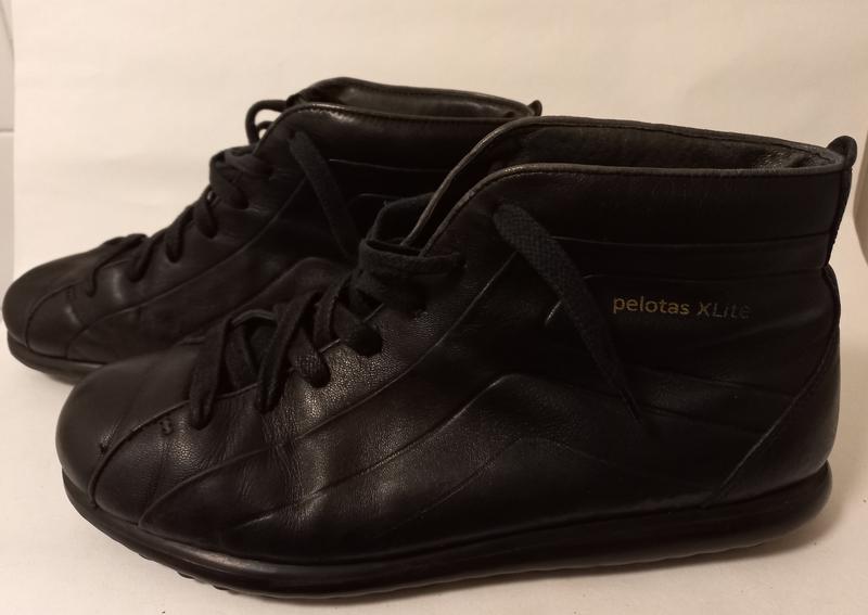 Демісезонні черевики Camper Pelotas X-lite з м'якої телячої шкіри, дуже зручні і дуже легкі. Підошва EVA (еластична, пружна і гнучка, забезпечує ідеальну амортизацію, зносостійка) Знімна устілка. Довжина по устілці до загину 27см, повна довжина 27,7 см Нюанс: невеличка малопомітна потертість на заднику правого черевика зовні і легкі потертості всередині задника зверху біля шва на обох черевиках (див. фото) Не секонд, речі свої. Повернення можливе протягом 2 днів після отримання, за рахунок покупця.