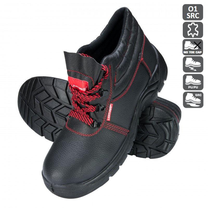 Размеры: 40, 41, 42, 43, 44,45 - Материал: Кожа - Упаковка: Картонная коробка - Подошва: Полиуретан Описание: Черные кожаные ботинки с красными элементами (швы, шнурки, фирменная нашивка). Подкладка изготовлена из мягкого трикотажа. Сменная стелька. Небольшие мягкие «подушки» в районе лодыжек для защиты от ударов. Качественная резиновая подошва и рельефный глубокий протектор обеспечивают высокую устойчивость обуви. Удобная модель.