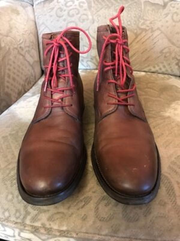 Чудові черевички німецького бренду , розмір 43 вказано, повна довжина устілки-29,5см, врахуйте вузький носок, розміру відповідають. Зовні шкіра, всередині екохутро, для єврозими розраховано, пару раз обув син і виріс з них.