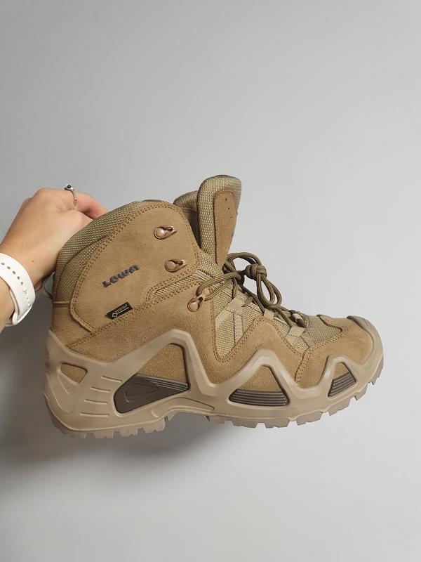 Виробник – Lowa, Словаччина Висота – 145 мм Вставки – нейлонова кордура Мягкі та еластичні манжета Soft Cuff Дихаюча водовідштовхуюча мембрана Gore-Tex® Зйомна анатомічна устілка Посилена пятка та носок 2-х зонна система шнурівки Торсионная вставка в подошве LOWA ″Cross″ Бокова підтримка Колір – койот Бежеві Зелені розмір 41 та 46 - 8300