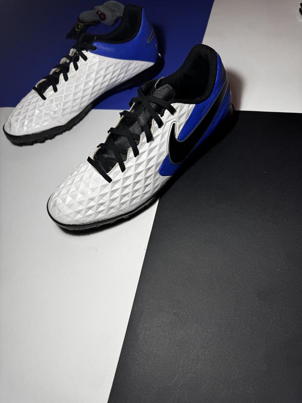 Это сороконожки Nike Tiempo Legend 8 TF🔥 Размер: 44📏 Состояние: великолепный(как новые)😍 Цена: 1699грн✔️ 📌Эти сороконожки имеют стильный и современный, привлекающий внимание дизайн. 📍Верхняя часть выполнена из белого материала с выразительной текстурой в виде ромбов, что придает им объемность и характер. 📌Боковая часть и пятка имеют насыщенный синий цвет, который контрастирует с белым верхом и подчеркивает спортивный характер обуви. 📍Черные детали, включая шнурки и подошву, добавляют обуви элегантности и завершенности. 📌На боковой стороне размещен крупный черный логотип, что свидетельствует о бренде и придает сороконожкам узнаваемости.