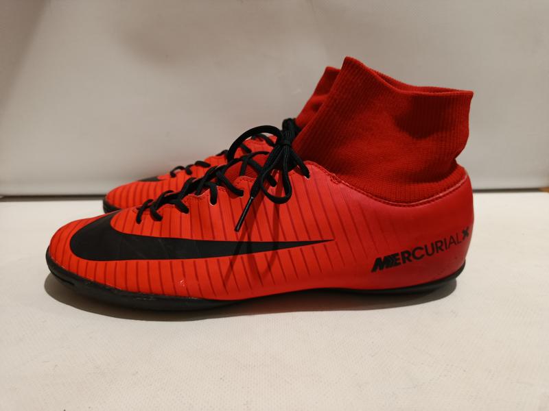 Футзалки Nike MercurialX VICTORY VI DF IC созданы для игры на футзальных поверхностях. Размер 45,5. Стельки 29,5 см. При изготовлении верха используется легкая, синтетическая кожа и высокоэластичный, текстильный материал. Верх имеет цельную конструкцию, в которой отсутствует традиционный, внутренний язычок, что дает игроку плотную и максимально комфортную посадку. Эластичный ворот Dynamic Fit Collar обеспечивает удобную и надежную посадку на ступне, ворот дополнительно поддерживает голеностопный сустав. Наноженная на поверхность рельефная структура улучшает качество контроля мяча, усиливает тактильные ощущения. Внутри расположена стелька из мягкого вспененного материала, обеспечивающая правильное анатомическое положение ступни в обуви. Подошва из прочной износоустойкой резины отлично адаптируется к естественным движениям ступни игрока, позволяет двигаться легко и быстро.