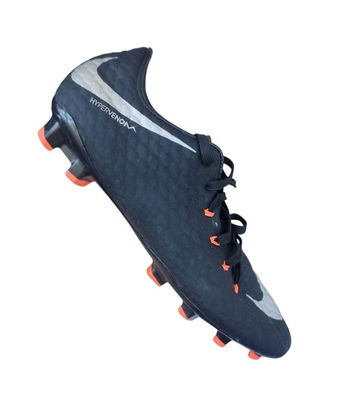 Состояние (б/у) Фото реальные Размер указан 42 Стелька 26,5 см Производство Индонезия Бутсы Nike Hypervenom Phelon III предназначены для любительского уровня игр и тренировок. Идеально подходят для жестких полей с натуральным или травяным газоном. Верх обуви изготовлен из легкого материала NikeSkin и полностью повторяет изгибы ноги. Стелька состоит из пенного материала, гарантирует амортизацию и комфорт. Ассиметричная шнуровка увеличивает область удара. Перфорированный язычок способствует дополнительному притоку воздуха к ноге. Язычок прочно зафиксирован шнуровкой, это препятствует его смещению при ходьбе и играх. Подошва изготовлена из TPU, эластичная и долговечная. Шипы различной конфигурации способствуют созданию надежного сцепления на травяном покрытии.