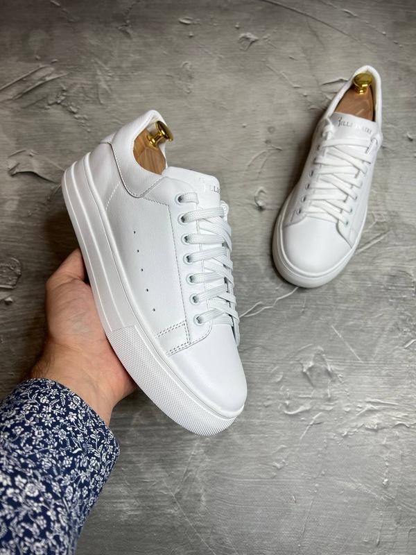 Матеріал: високоякісна натуральна, м'яка щільна шкіра. Усередині: шкіра Устілка: шкіра Підошва: ЕВА, легка Модель: BL-mc білі розміри: 40-26 см 41-27 см 42-28 см 43-28.5 см 44-29 см 45-30 см