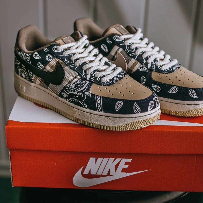 ✅ Nike Air Force 1 c Cactus Jack Ціна : 2180 Код : 756 Виробник: В'єтнам (топ якість) Взуття: Чоловіче Розмірна сітка: 41-44 Матеріал: Текстиль, шкіра Підошва: Гума Коробка: Nike