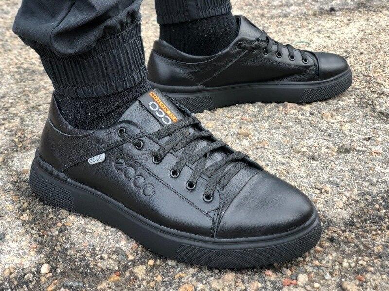 Стильные кроссовки, кеды экко ecco кожаные черные мужские (весна/осень/деми/демисезонные)...