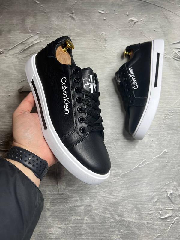 Стильные кеды кельвин клян calvin klein кожаные черные мужские (весна/осень/лето деми/деми...