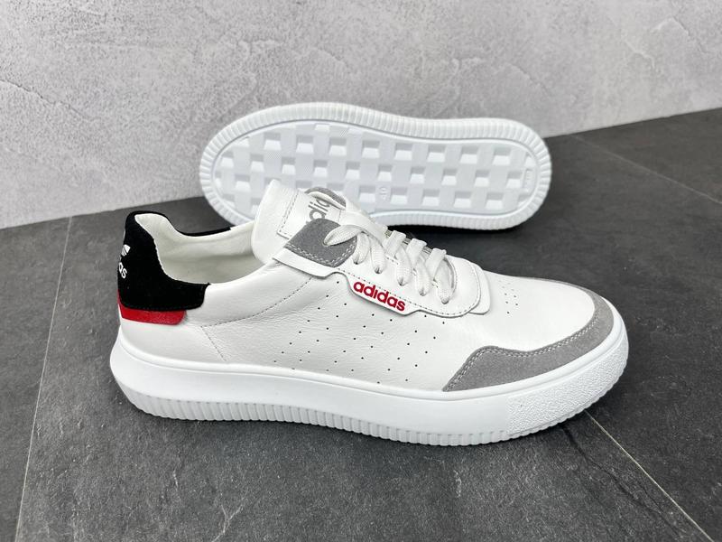 Чоловічі шкіряні кеди Adidas Код: А22-3 білий Сезон: весна-осінь Тип: кеди Стать: чоловіча Колір: білий,чорний Верх: натуральна шкіра + вставки нубук Середина: текстиль Підошва: термополіуретан (устілка знімна, м'яка) Стиль: повсякденний Розміри: 40,41,42,43,44,45. 40-(26 см) 41-(27 см) 42-(28 см) 43-(28,5 см) 44-(29 см) 45-(30см)