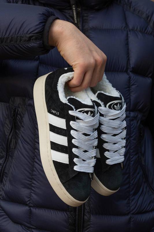 Adidas Campus Winter Black\White Код : 1589 Производитель : Вьетнам. (ТОП КАЧЕСТВО🇨🇳) Размерная сетка : 36-45. Материал : Замша , Кожаные вставки . Подкладка : Мех , меховая стелька . Подошва : Резина высокого качества , прошиты . Коробка : Адидас , Пергамент , запасные шнурки .