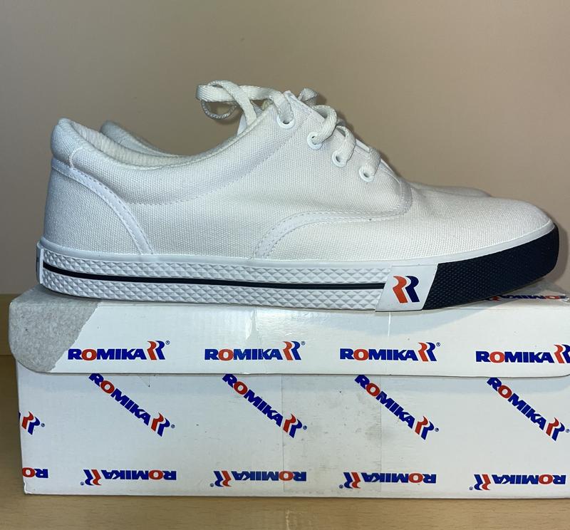 Белые кеды Romika (US8.5). Знаменитый немецкий бренд, звёздный час которого пришёлся на середину 80-х, вновь напомнил о себе. Красивые кеды с "каучуковой" подошвой, верхом из натуральных материалов, будут прекрасным дополнением к летнему гардеробу. Наш размер - 41.5. Абсолютно новая пара, коробка слегка повреждена. Оригинал. Возможна доставка по Украине (Новая Почта, Укрпочта) - форма оплаты по договоренности.