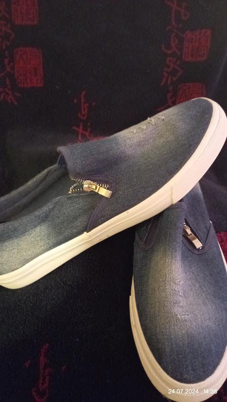 слипоны, кеды, мокасины джинсовые...края обработанные, чистенькие, почти новенькие, не секонд. написано 43 размер, комфортно на 42 будет...У меня есть шорты под них) легкие, удобные, качественные, симпатичные)(