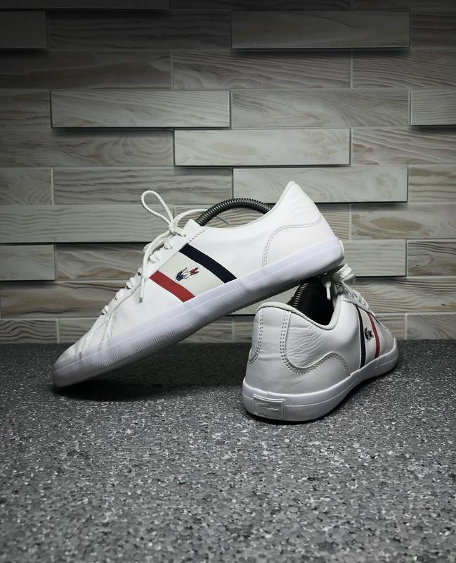 Оригинальные кроссовки Lacoste . Верх выполнен кожи. Практичная , комфортная модель для повседневной носки. Подойдут как под джинсы, так и классический стиль . Стоимость новых от 3000 гривен в зависимости от ресурса . Состояние отличное . На стопу 27 см .