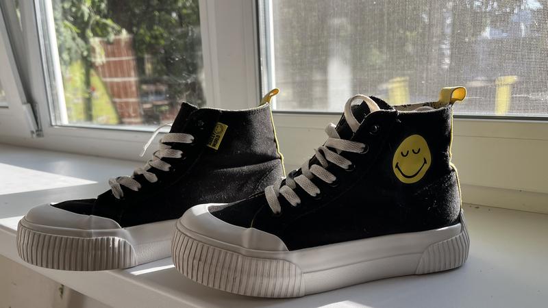 Крутые кеды на платформе,состояние отличное (нужна стирка -по стельке показала). Очень классные с прорезиненным носком. Носочки пяточки не сбиты.Смайлики в идеальном состоянии.Размер 37 / 23 см. Плптформа 3 см.