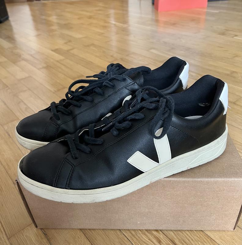 Чорні шкіряні кеди VEJA, оригінальні. 46 розмір (євро), стан задовільний. Носились пів сезону, під дощем намокли, при висиханні зсохлись. Вплинуло візуально, промокати не стали. Повний стан видно на фото. Оригінальна коробка, все як купувалось.