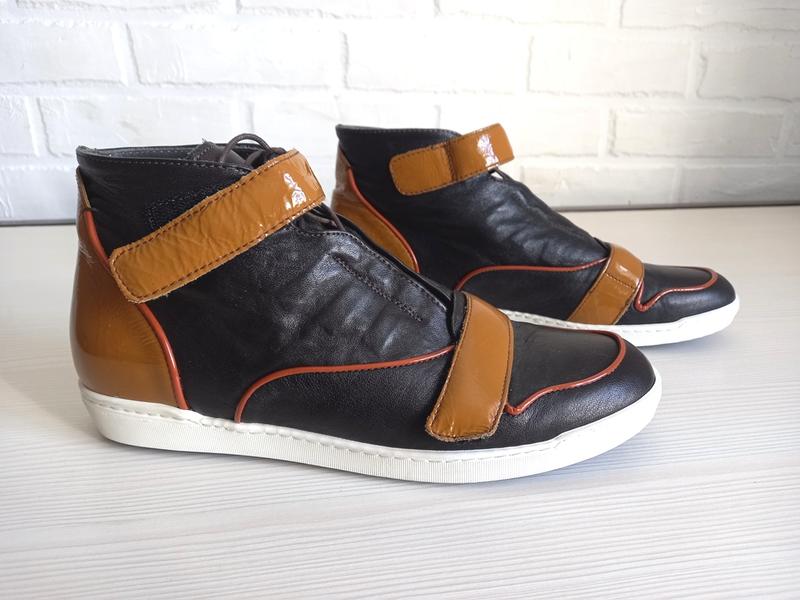 Высокие кожаные кеды Navyboot, черная кожа с усилениями лакированной кожи карамельного цвета, размер 42, состояние новых Длина стельки - 29 см, ширина - 9 см, высота - 14 см