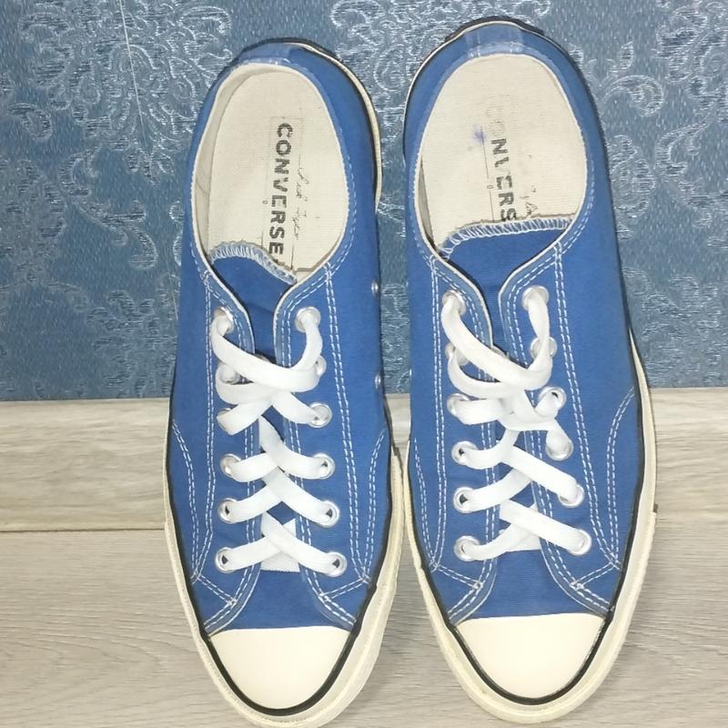 Кеды в хорошем состоянии. На сгибах резина не отходит от основания!! Цвет - синий стандарт. Модель с классической подошвой. Шнурки не родные!!! Размер 41,5 на ногу 26,5 см!
