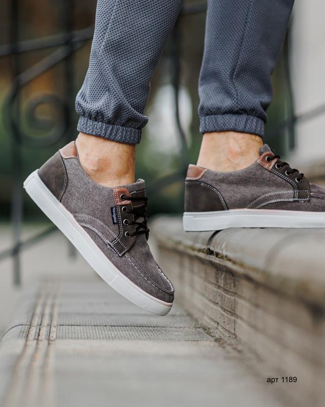 🖍Мужские кеды. Арт: 1189 💵Цена 1299грн. ⚫️Размеры в наличии: (сильно маломерят!) 41-25.5см, 42-26см, 43-26.5см, 44-27см, 45-27-27.5см, 46-27.5-28см ⚫️Материал: Верх - текстиль. Подошва - пена. ⚫️Описание: Стильные мужские кеды в повседневном стиле, выполненные из прочного натурального текстиля с кожаными вставками для дополнительной износостойкости. Легкая подошва обеспечивает комфорт при ходьбе, а нейтральное сочетание серого и коричневого цветов легко подходит к любому гардеробу. Благодаря классической шнуровке обувь хорошо фиксируется на ноге, обеспечивая удобство в ежедневном использовании. Идеальный выбор для прогулок, встреч с друзьями или активной городской жизни.