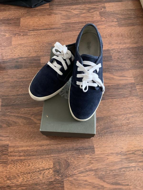 Чоловічі кеди бренду Timberlend. Оригінал з коробкою. Колір: синій. Стан: хороший. Розмір: 41. Є невеличкі дефекти в середині. Склад: замша