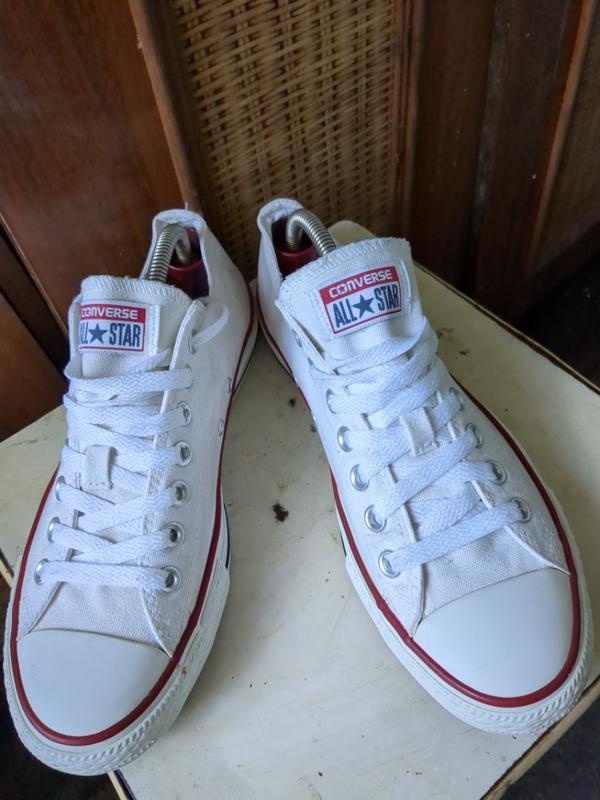 белый верх из плотного текстиля, резиновая крепкая подошва на надёжном протекторе. белый цвет модный, они классно и стильно смотрятся. бренд тому гарантия. размер указан 42, длина стельки 27 см.