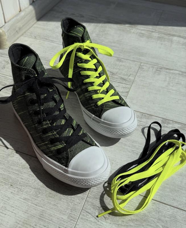 Конверси 💚🖤 В комплекті 2 пари шнурків - кислотні зелені і чорні ▫️Стан: ідеальний /новий ▫️Матеріал: текстиль ▫️Розмір: 41,5 (27,5 см)