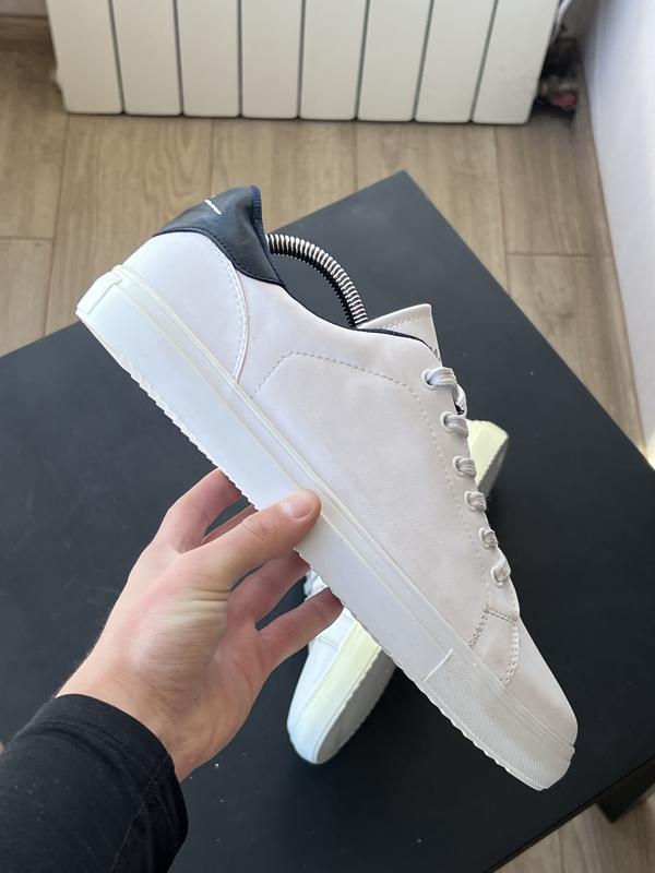 Продаю класні демісезонні кеди, які стануть ідеальною базою для вашого гардероба. Модель виконана у лаконічному дизайні: білий верх із контрастною темно-синьою (або чорною) вставкою на п'яті. Виглядають дуже стильно та дорого, підійдуть як під джинси, так і під більш класичні штани. Розмір: 44 (28 см) По стану на одному вигоріла підошва