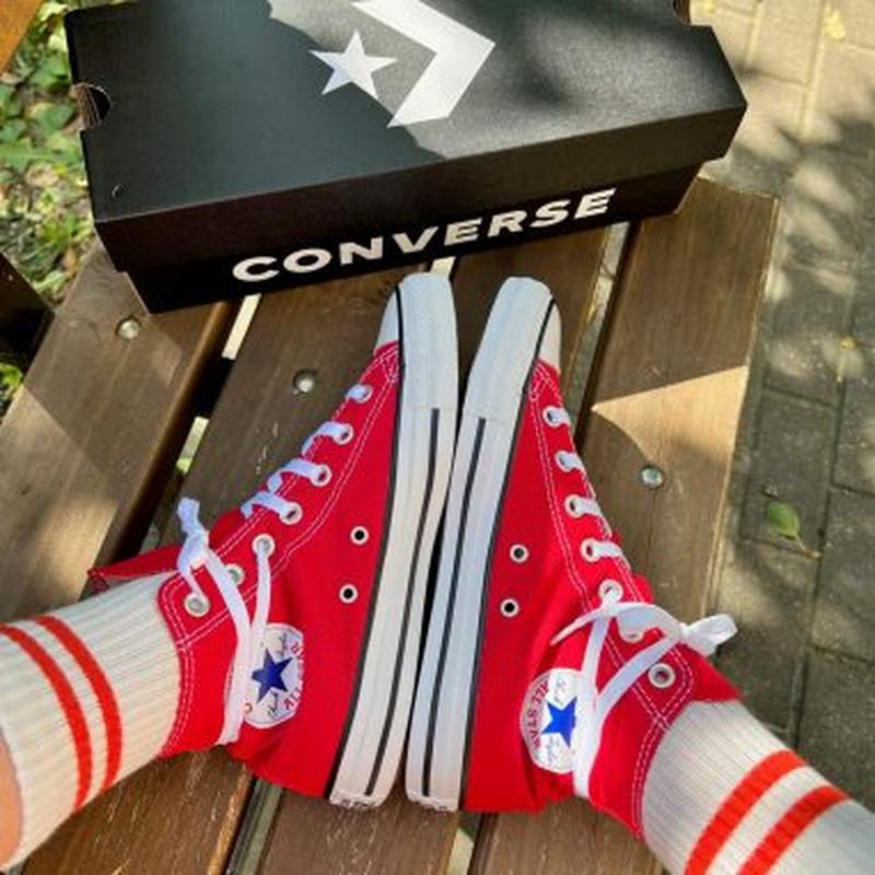 Назва : Кеди Converse All Star високі. Оригінал Ціна : 2890 грн. Опис : матеріали (текстиль, гума); колір : червоний; сезон : весна/літо/осінь; країна: В‘єтнам; розміри 35-45; стать: унісекс. Розмірна сітка на кеди Converse : 35-22,5 см; 36-23 см; 37-23,5 см; 38-24 см; 39-24,7 см; 40-25,5 см; 41-26 см; 42-26,5 см; 43-27,3 см; 44-28 см.