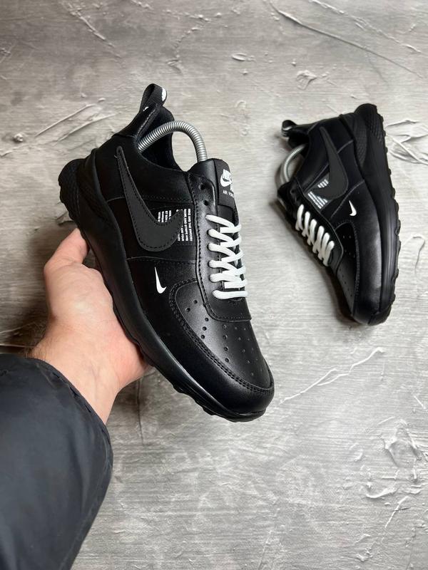 Стильные кроссовки найк nike черные кожаные мужские (весна/осень/деми/демисезонные,лето) в...