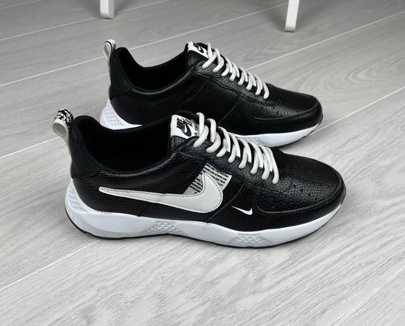 Мужские кожаные кроссовки Nike Код: 01-15/3 черный Сезон: весна-осень Тип: кроссовки Пол: мужской Цвет черный Верх: натуральная кожа Середина: текстиль Подошва: термополиуретан (стелька съемная, мягкая) Стиль: повседневный Размеры: 40,41,42,43,44,45. 40-(26 см) 41-(27 см) 42-(28 см) 43-(28,5 см) 44-(29 см) 45-(30см)