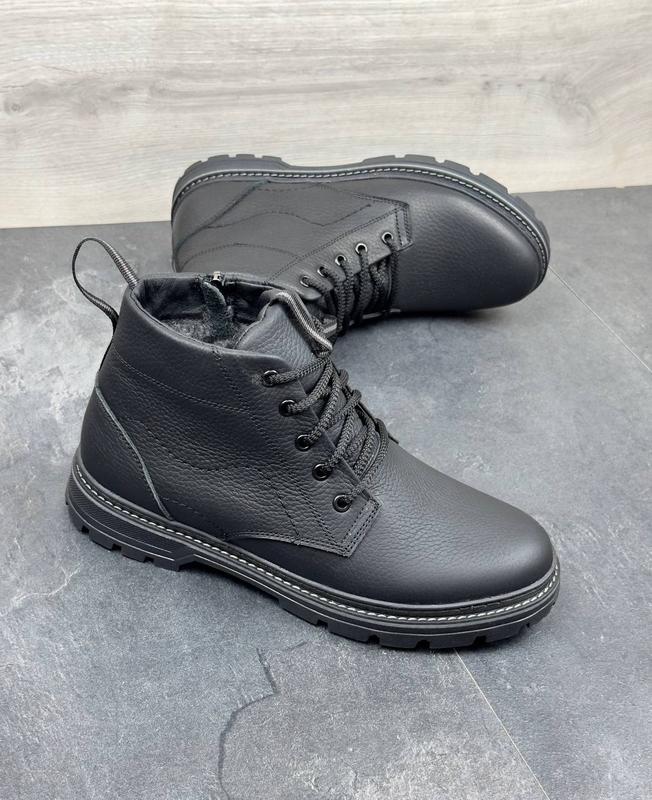 Мужские кожаные зимние ботинки 2180 грн. Код: БЛ черный Сезон: зима Тип: ботинки/кроссовки Пол: мужской Цвет черный Верх: натуральная кожа Середина: натуральная шерсть (набивная) Подошва: термополиуретан (прошитая) Стиль: повседневный Размеры: 40,41,42,43,44,45. 40-(26 см) 41-(27 см) 42-(28 см) 43-(28,5 см) 44-(29 см) 45-(30 см)