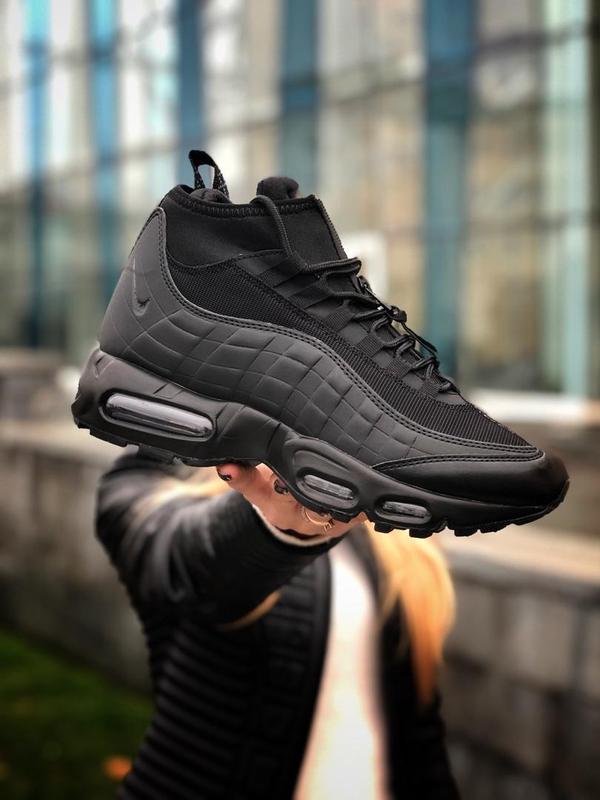 Кросівки Nike Air Max 95 Sneakerboot Black. Матеріал верху текстиль. Матеріал підошви подушка air. Колір моделі чорний. Ці кросівки підійдуть під сезон зимові. Ці кросівки будуть служити вам довго і радувати Вас.