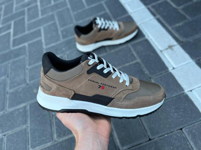 Мужские кроссовки Топ качество цена: 2250 грн. Код: 02-14/4 кор Сезон: весна-осень Тип: кроссовки Пол: мужской Цвет - коричневый Верх: нубук (премиум качество) + кордура (водоотталкивающая ткань) Середина: обувной текстиль (пятка кожаная) Подошва: пенка (очень легкая) Стиль: повседневный Размеры: 40,41,42,43,44,45. 40-(26 см) 41-(27 см) 42-(28 см) 43-(28,5 см) 44-(29 см) 45-(30 см)