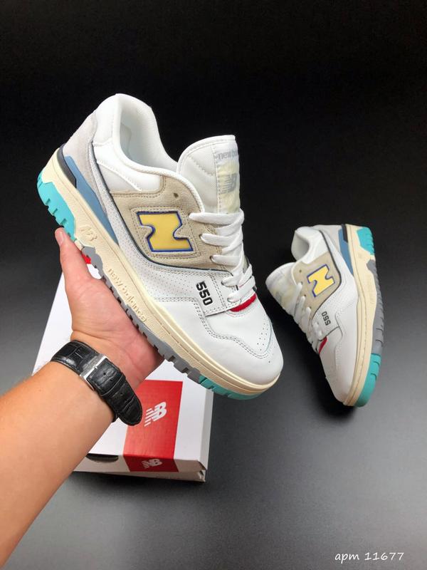 артикул 11677 білі з жовтим сезон: демісезонні виробник: В'єтнам модель: New Balance 550 розміри: 41 42 43 44 45 матеріал: прес шкіра, підошва резина, прошиті