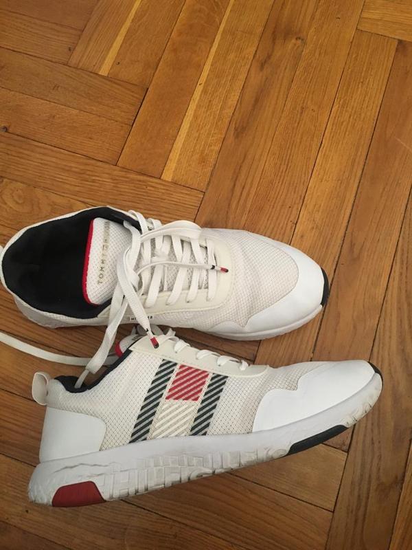 Очень очень лёгкие кроссовки в хорошем состоянии (беленькие ,не затасканы )пятки всё целое ,подошва не протертая (просто там буквы ,следы носки незначительные )есть дефект на шнурке ,одна штучка потеряна (на фото показала )по 5 шкале состояние на твёрдую 4 .Указан размер 43 ,длина стельки 28 ,но лучше на ногу 42-42.5 ,папа из за того что тесноватые не мог носить