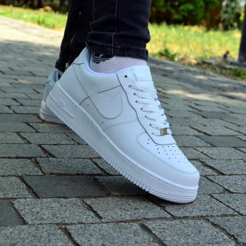 Nike Air Force 1 White 📐 Розміри : 40 - 45 🔤 Арт : Е188 Матеріал - Виконаний з якісної, м'якої шкіри. Всередині - М'яка текстильна підкладка. Вставка Zoom Air для амортизації. Підошва - Зносостійка гума з протектором. Виробник - Китай по бірці В'єтнам(Топ Якість). У комплекті фірмова коробка Nike, папір Nike.