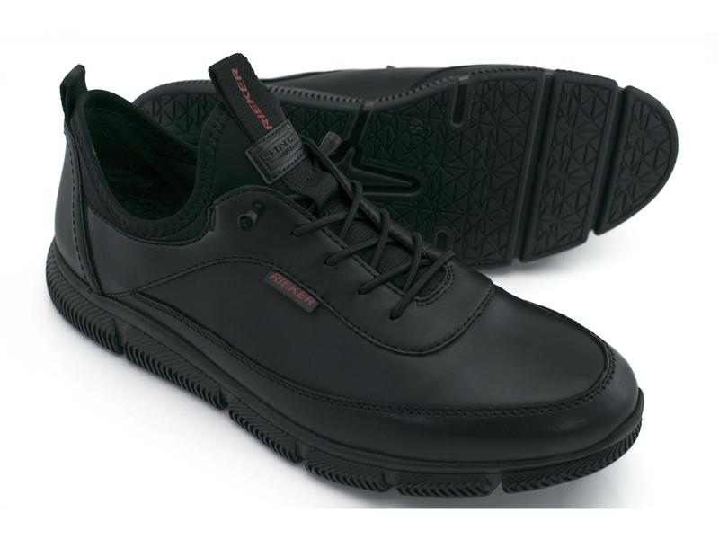 Стильные оригинальные мужские немецкие кроссовки из натуральной гладкой кожи. Обувь выполнена в черном цвете, очень лёгкие, со повышенной полнотой. Германия, кожа, черный, демисезон