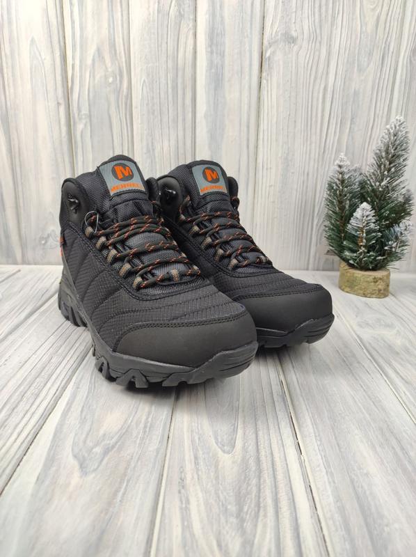 Merrell Vibram High Winter Black Orange 🔹 Размеры (длина стельки): • 41 (26.0 см) • 42 (26.5 см) • 43 (27.5 см) • 44 (28.0 см) • 45 (28.5 см) 🔹 Материал верха: Комбинированный, Текстиль waterproof 🔹 Утеплитель: Искусственный мех 🔹 Подошва: Резина 🔹 Сезон: Зима
